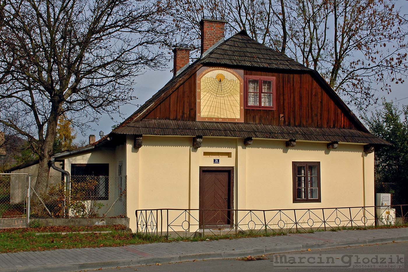 zabytkowy dom z zegarem słonecznym