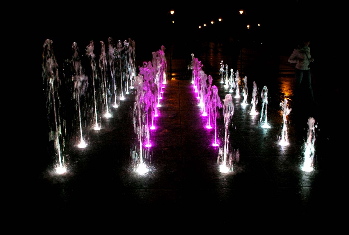 kolorowa fontanna na promenadzie