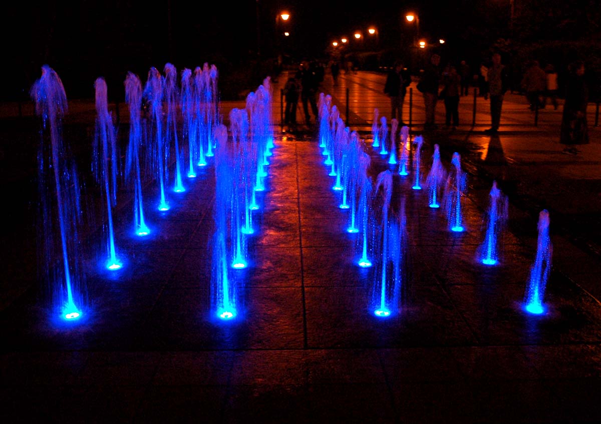 niebieska fontanna na promenadzie nocÄ…