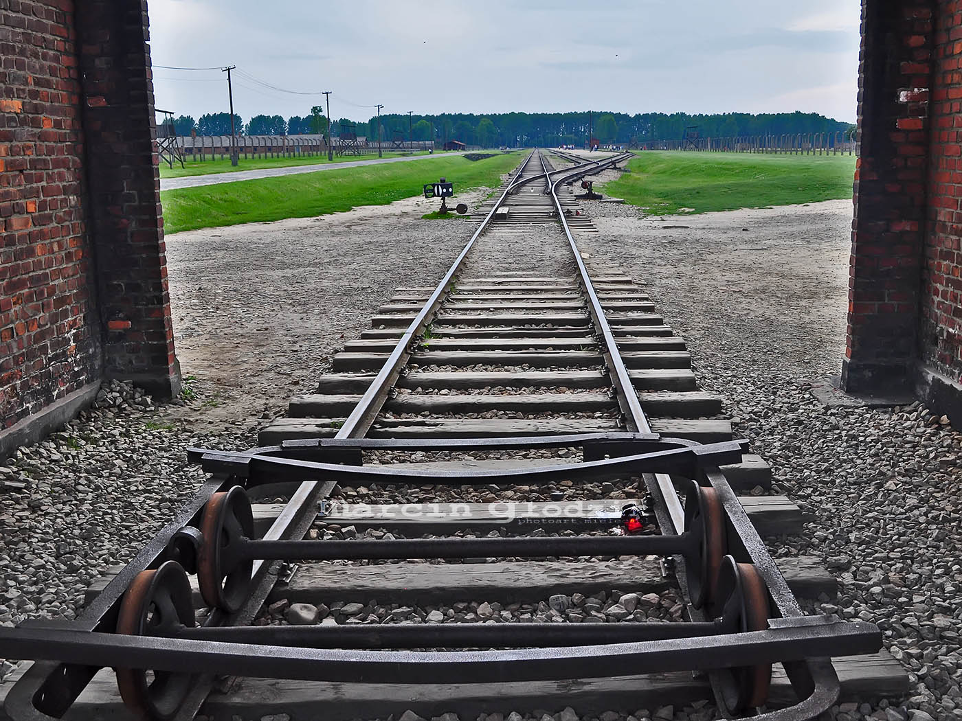 Muzeum Birkenau bocznica kolejowa - widok z bramy glownej